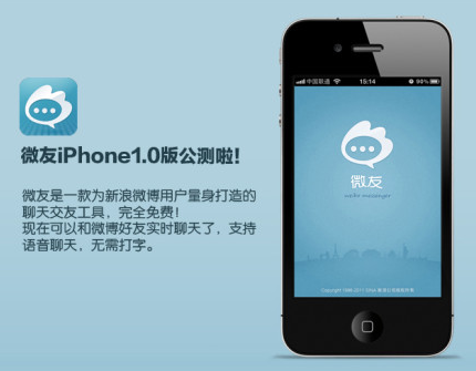According to people familiar with the matter, Sina WeiYou will be based on Sina Weibo, means you can import all your relationships on one of the most popular Chinese social media. The app also lets you to send free voice messages just like walkie-talkie through 3G/GPRS network, no extra charges and no strings attached.